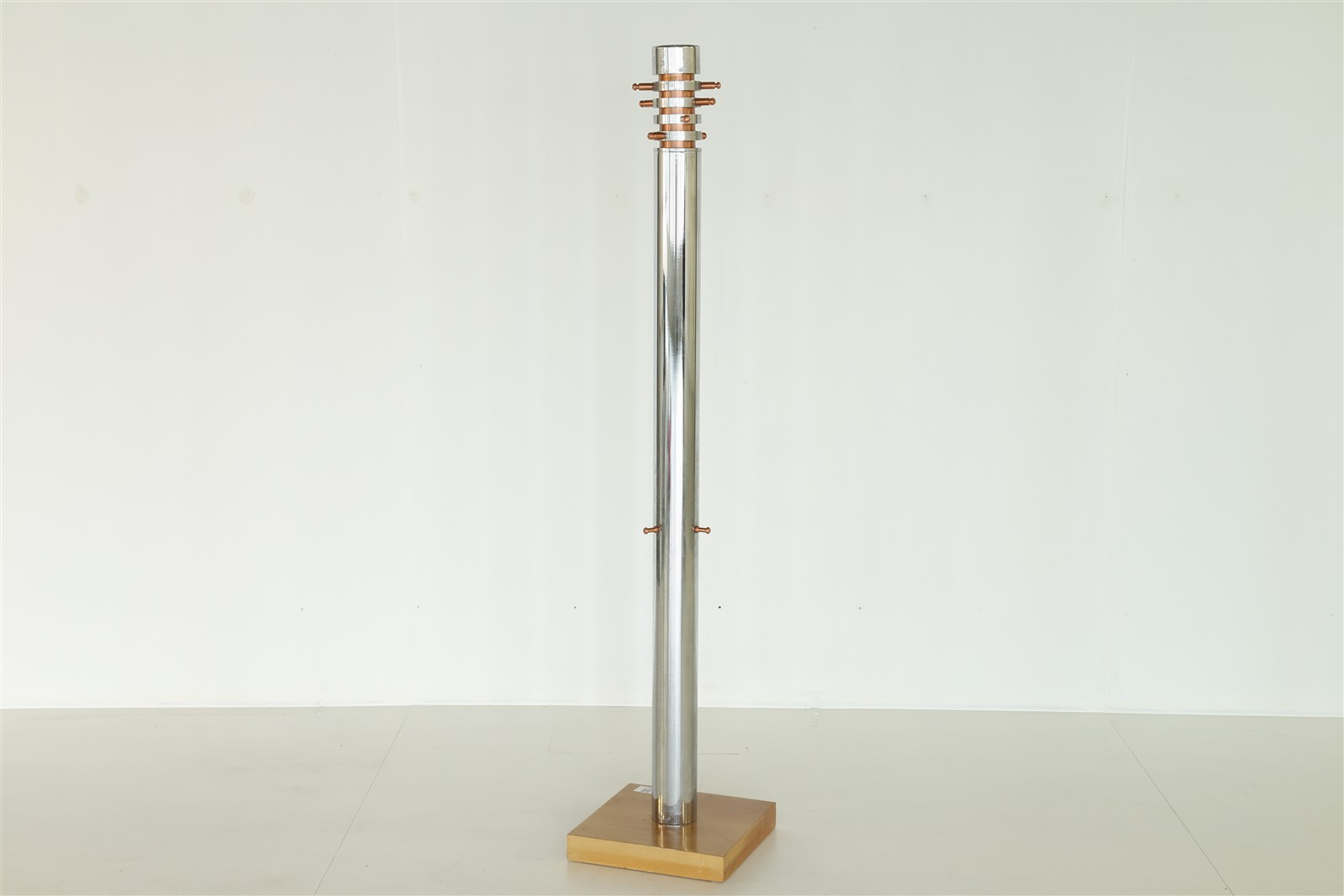 MANIFATTURA DEL XX SECOLO Appendi abiti. Acciaio, legno, rame. Cm 36,00 x 172,00. Anni '70.
