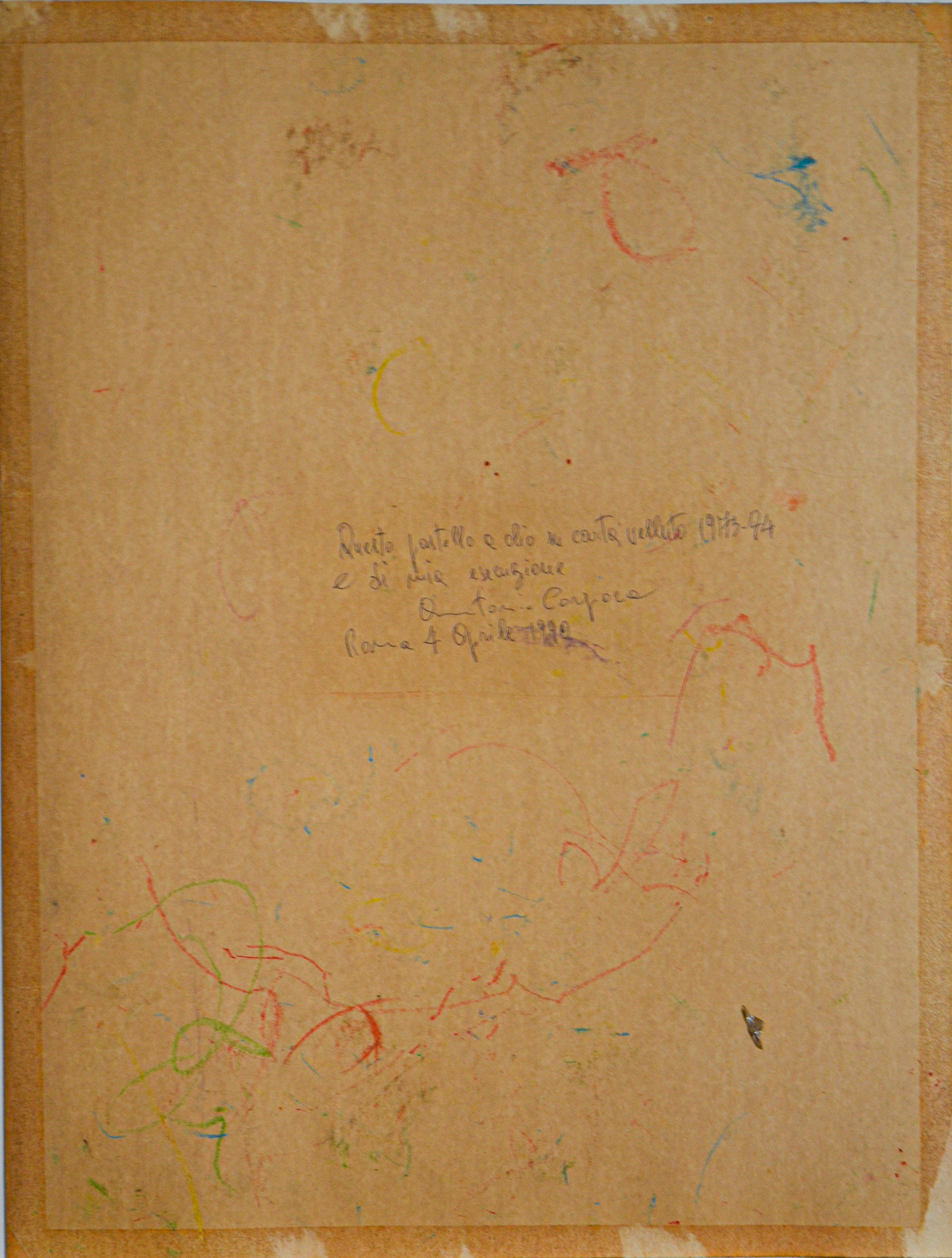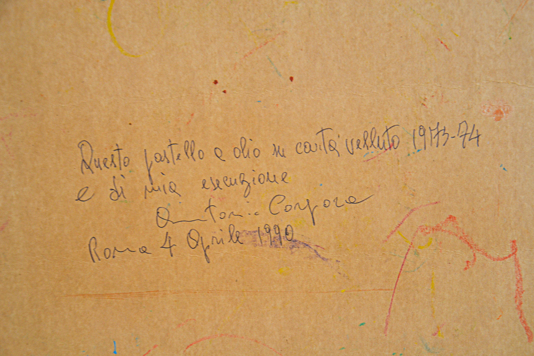 Sul retro dell'opera è presente l'autentica manoscritta dall'artista rilasciata a Roma il 04/04/1990