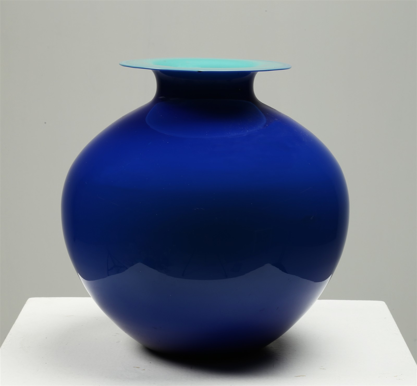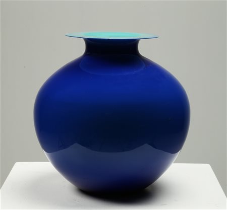 VETRERIA MURANO Vaso blu e verde. Vetro incamiciato. Cm 25,00 x 29,00. Anni'80.