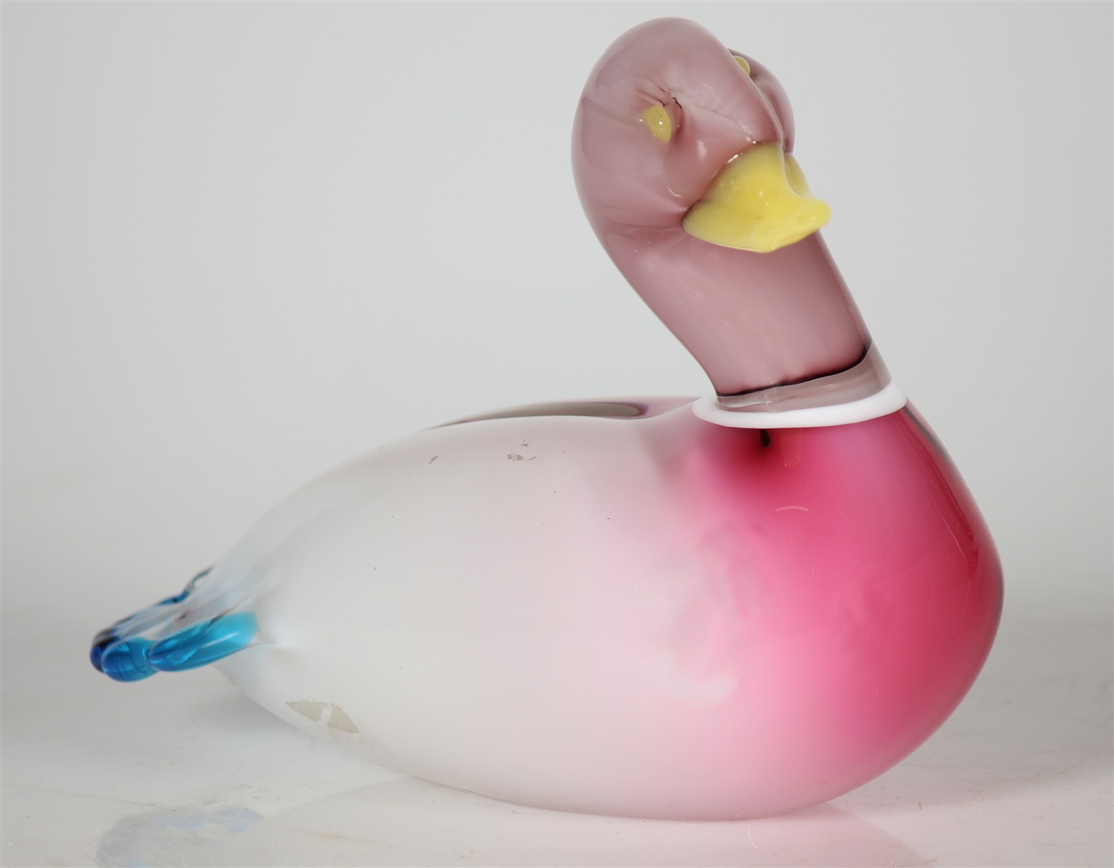 MANIFATTURA DEL XX SECOLO Anatra in pasta di vetro. 1991. Vetro di Murano. Cm 15,00 x 20,00. Firma graffio e data sotto la base.