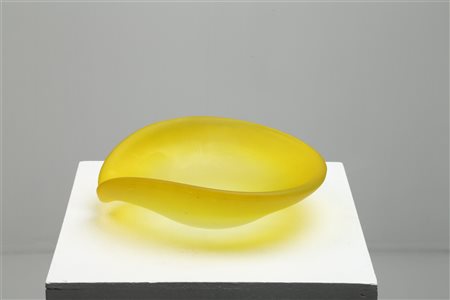 SALVIATI VETRERIA Centrotavola in vetro massello, acidato e satinato, color giallo opalino. Vetro. Cm 25,00 x 35,00.