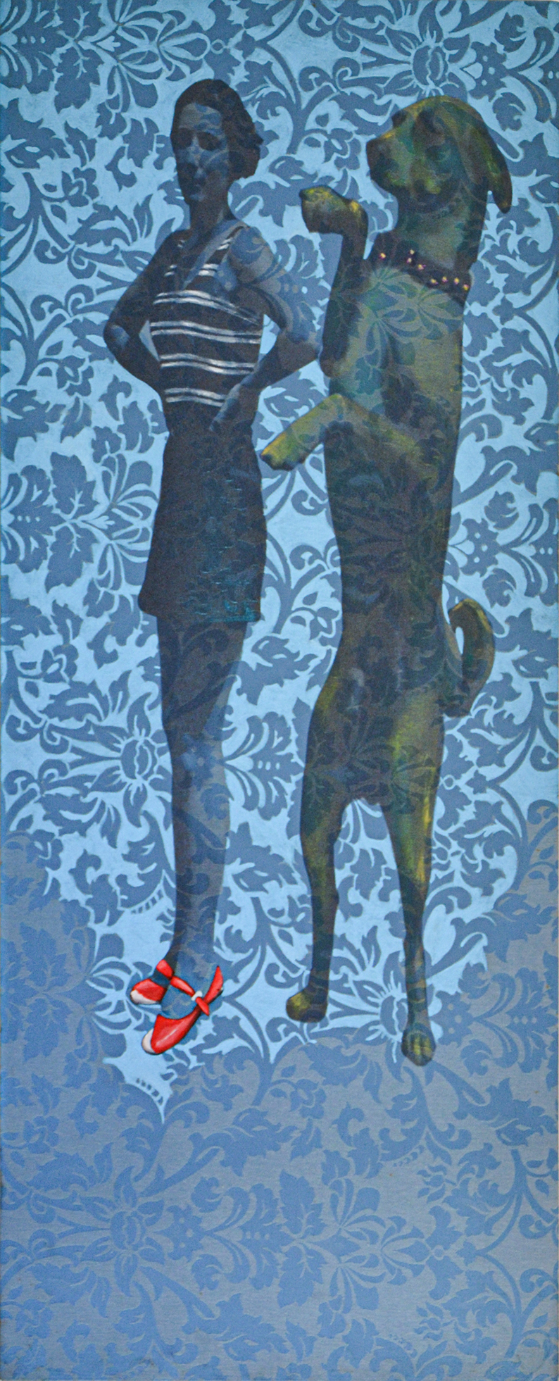 Tecnica mista (olio e stampa a getto d'inchiostro con ricamo su tessuto), cm 100x40