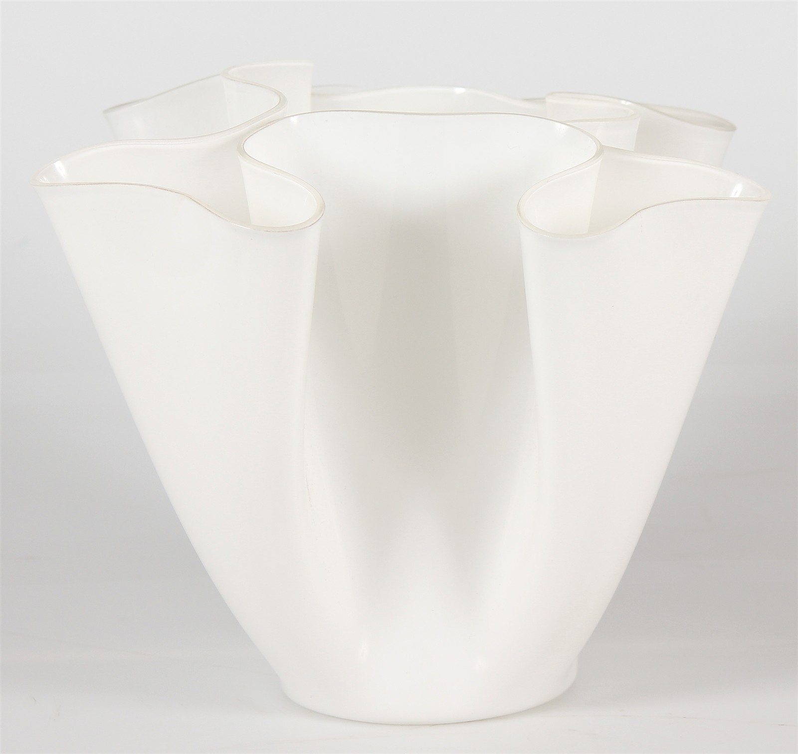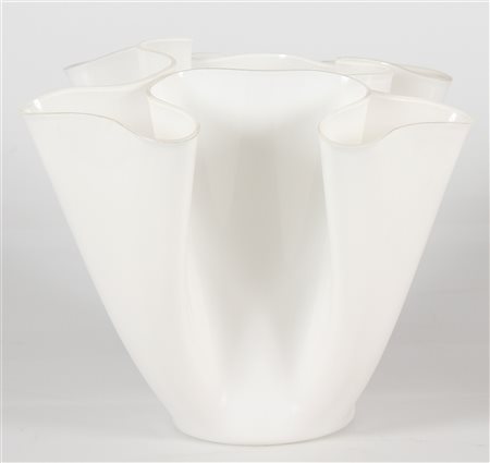 VENINI Vaso fazzoletto, vetro lattimo. Vetro di Murano. Cm 30,00 x 24,00.