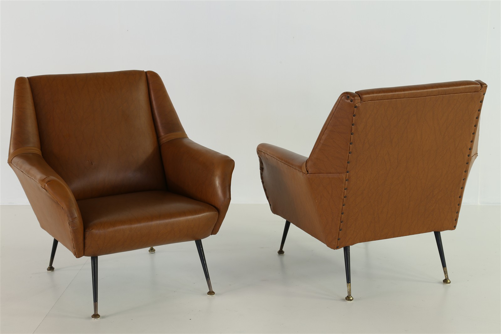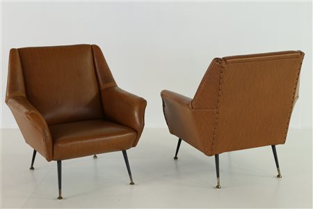 RADICE GIGI Coppia di poltrone. Tessuto e legno. Cm 80,00 x 83,00 x 75,00....