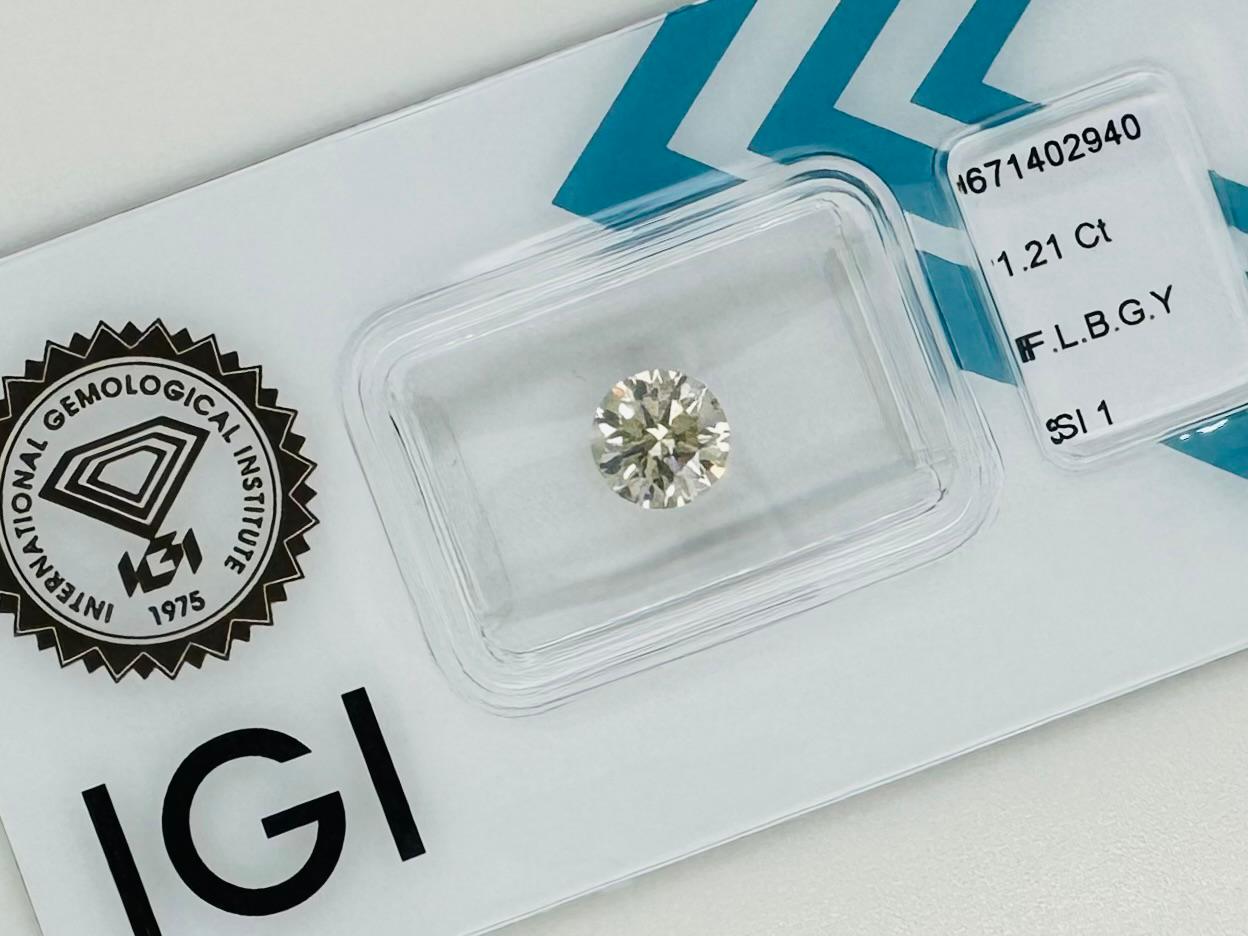 DIAMANTE NATURAL POLISHED 1,21 - COLORE NATURAL FANCY MARRONCINO VERDOGNOLO GIALLO - PUREZZA SI1 - CERTIFICATO IGI - C41004-15 - COMMISSIONE D’ASTA 25%