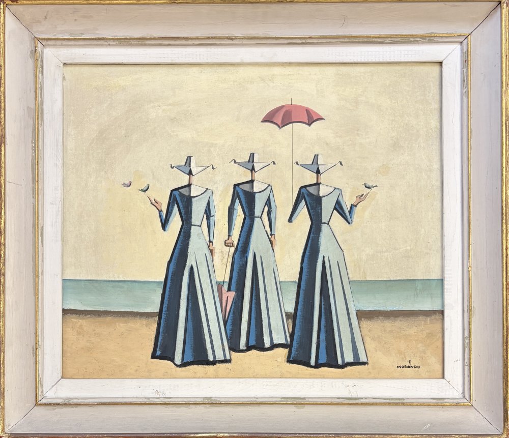 Pietro Morando Alessandria 1889 - 1980 Suorine al Mare Olio su tela cm 50x70 firmato in basso a dx