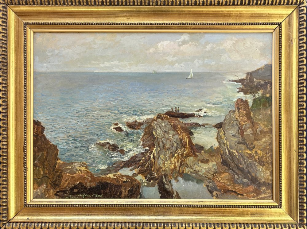 Carlo Rossi Busto Arsizio (VA) 1914 - 2000 Marina con scogli Olio su tela cm 50x70 firmato in basso a sx