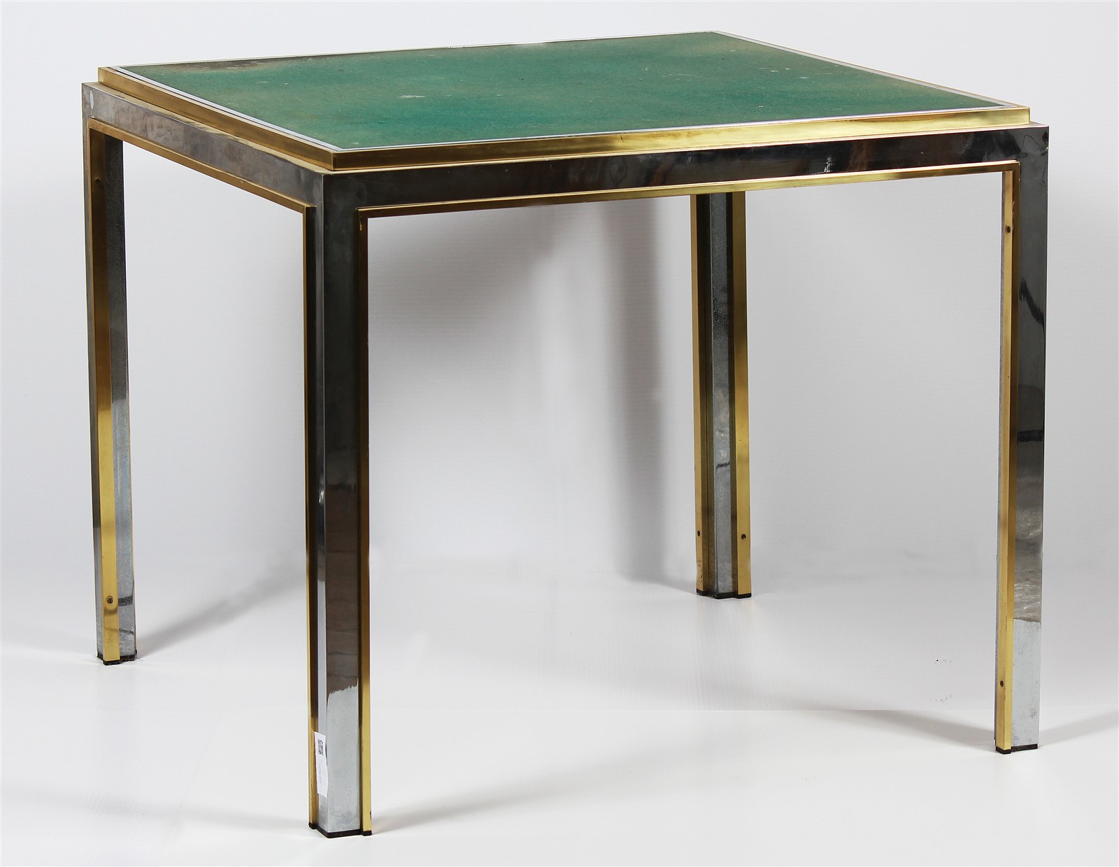 REGA ROMEO Tavolo da gioco. Ottone,acciao. Cm 90,00 x 77,00 x 90,00. Piano reversibile radica/panno verde.
