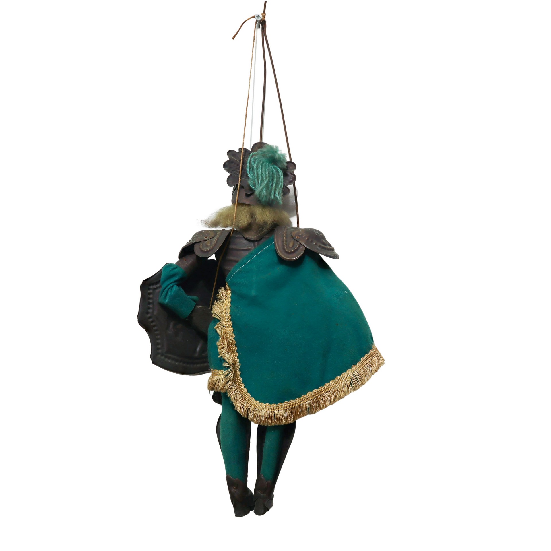N°2 Pupi siciliani paladini con armatura in lamierino stampato e abiti in tessuto cm 39 cm 43