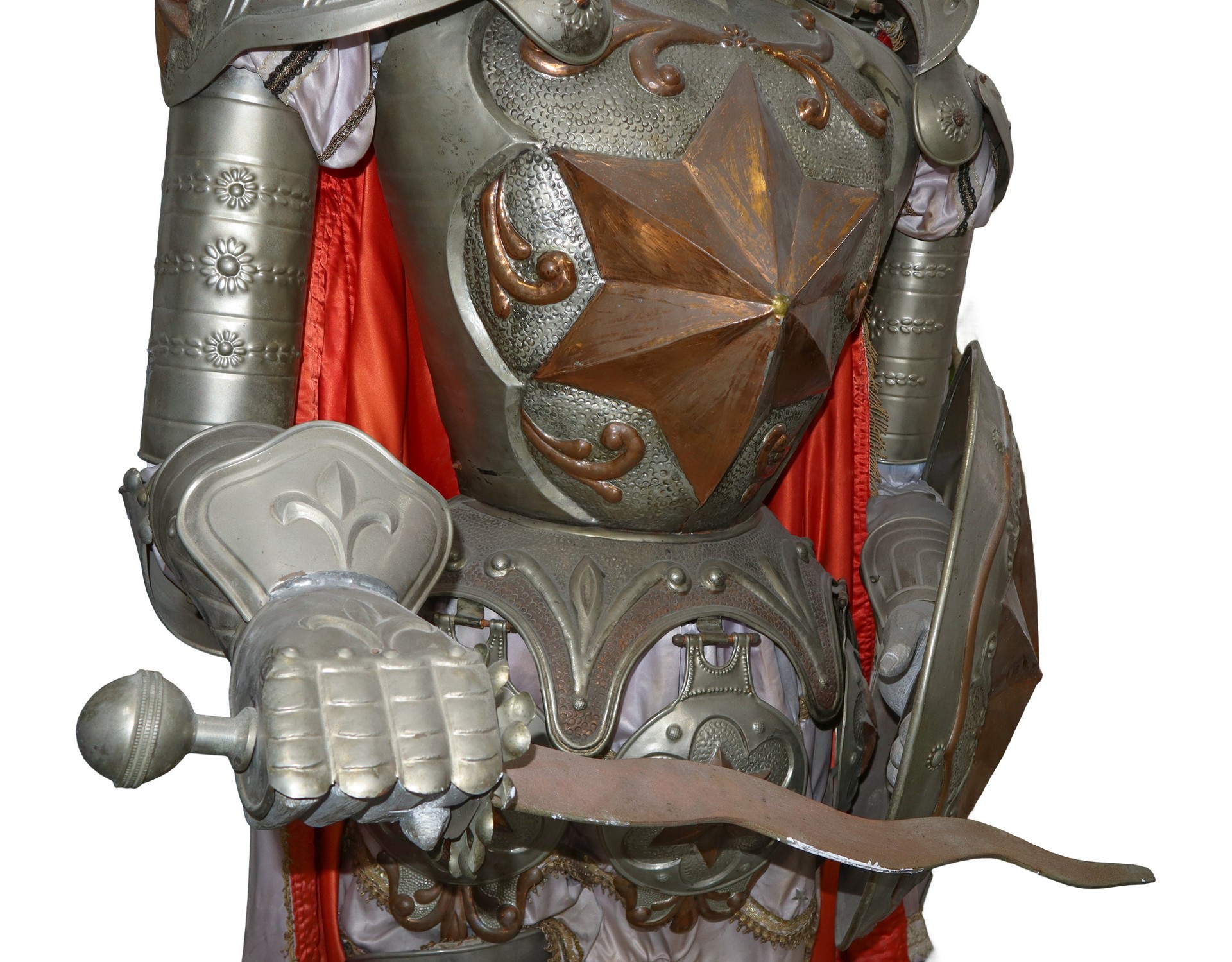 Erminio della stella d'oro: pupo siciliano di grandi dimensioni con armatura argentata e indumenti in tessuto rosa h 229