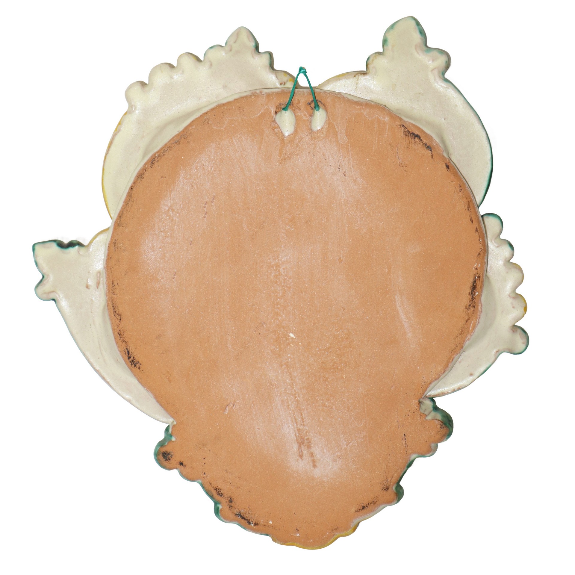 Riccardo Varsallona ceramiche (Caltagirone) - Acquasantiera in maiolica di Caltagirone dipinta policroma con raffigurazione di un putto h cm 23X22 Firma della manifattura sul fronte