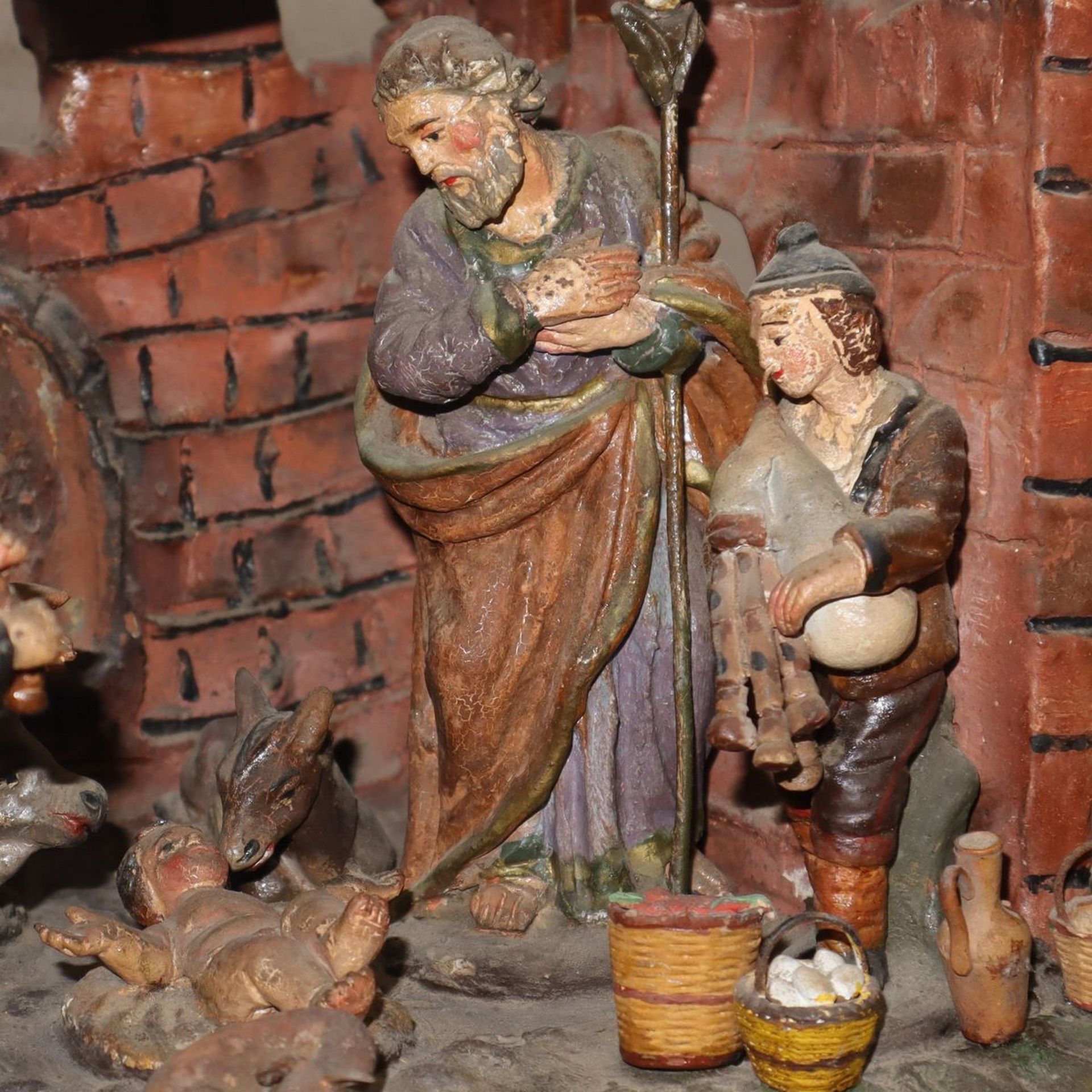 Presepe in ceramica policroma di Caltagirone con pastori e angeli, 20° secolo