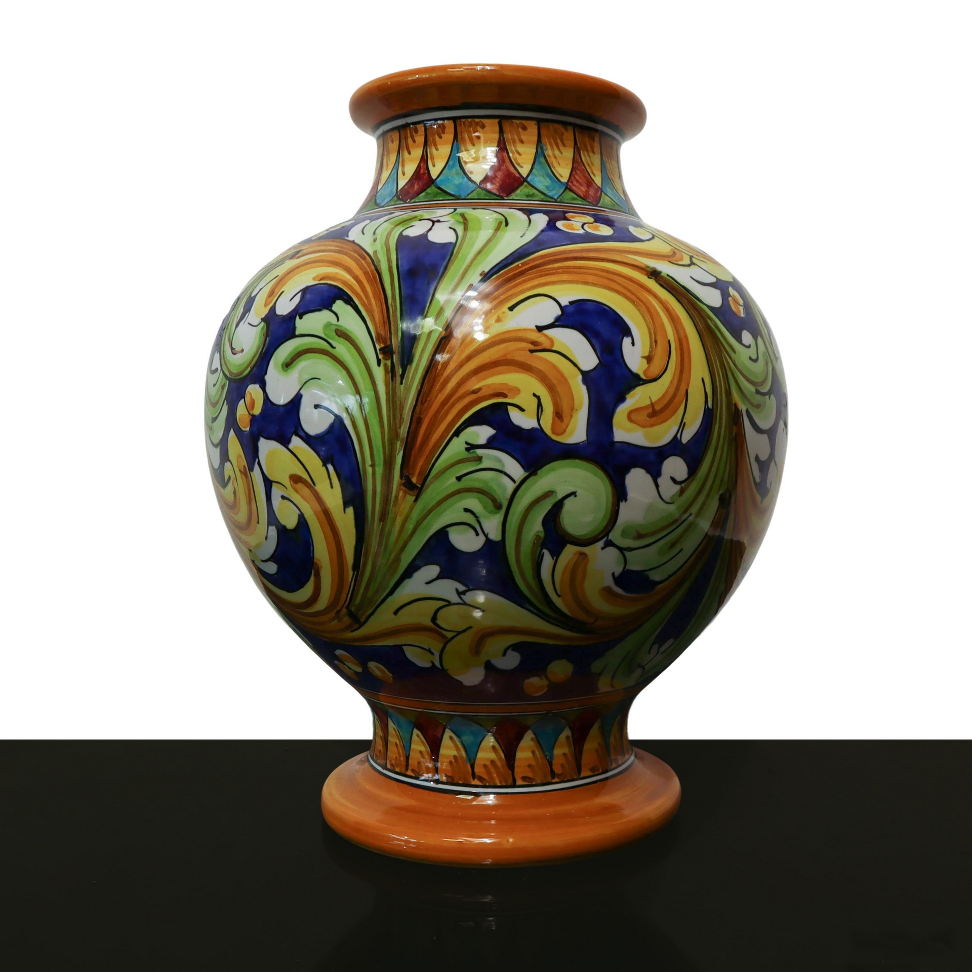 Vaso in maiolica di Caltagirone policroma e decorata a foglie