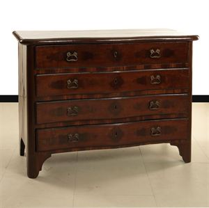 CASSETTONE Cassettone in legno di noce a 4 cassetti mosso sul fronte, piano...