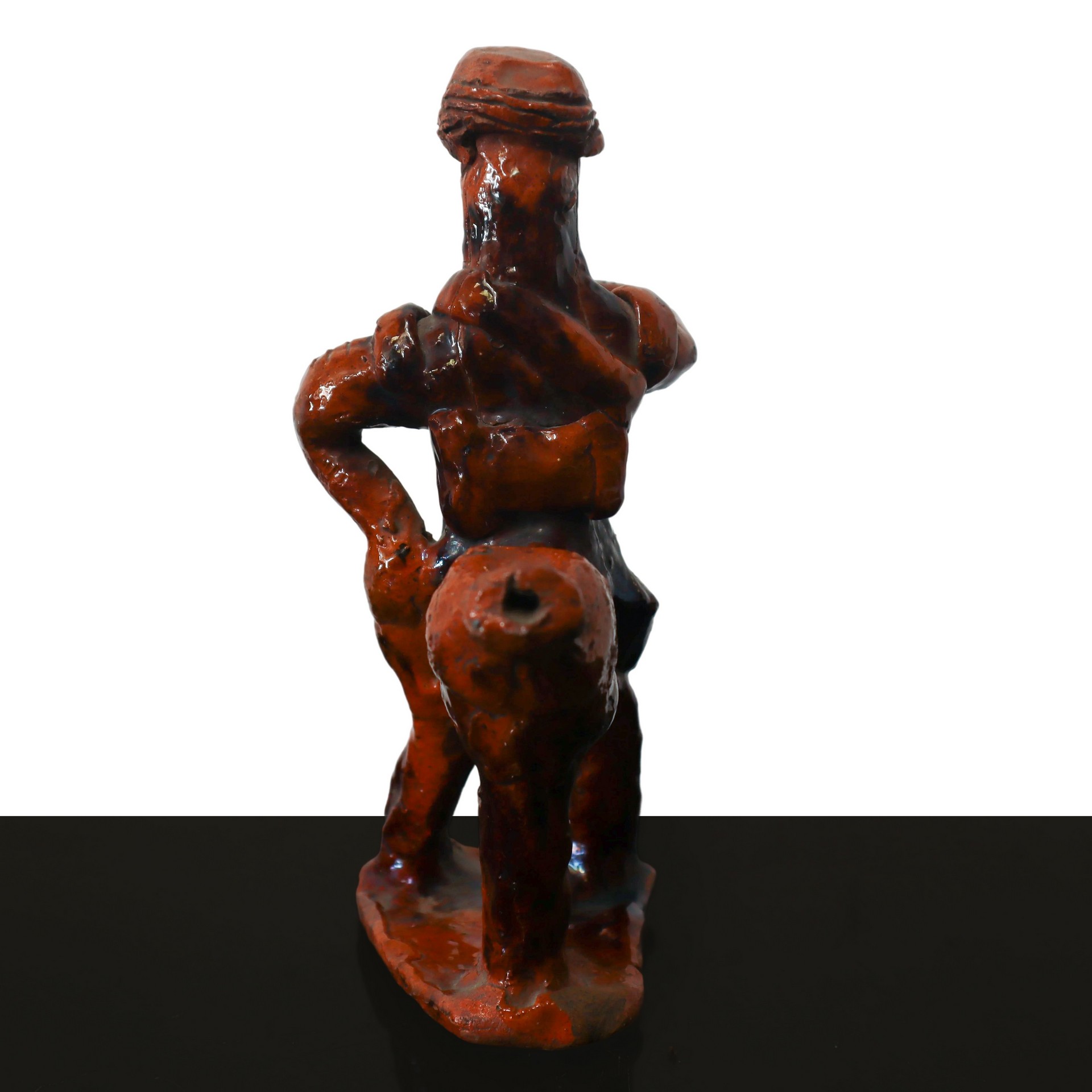 Fischietto a guisa di uomo a cavallo nei toni del marrone h cm 17.5
