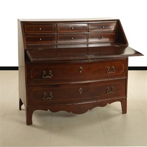 RIBALTA Cassettone con ribalta in legno di noce a tre cassetti mosso sul...