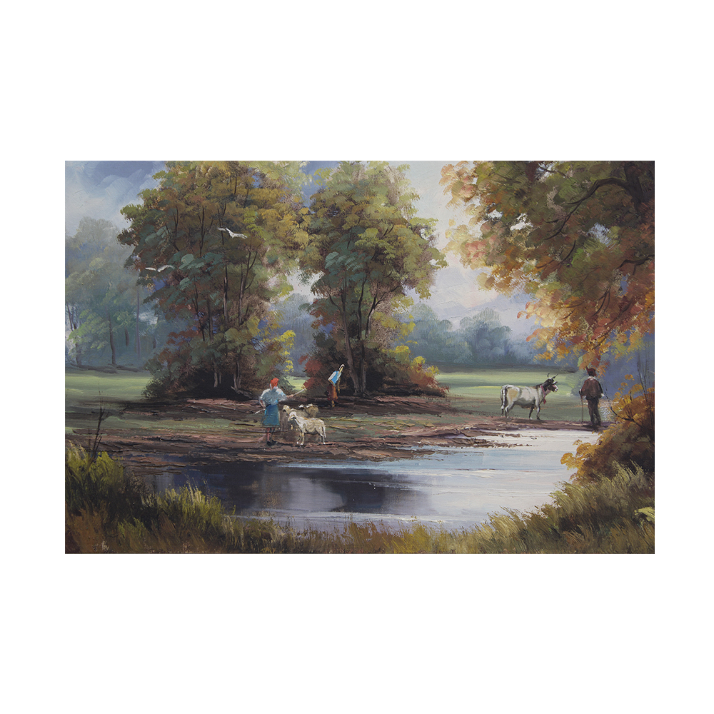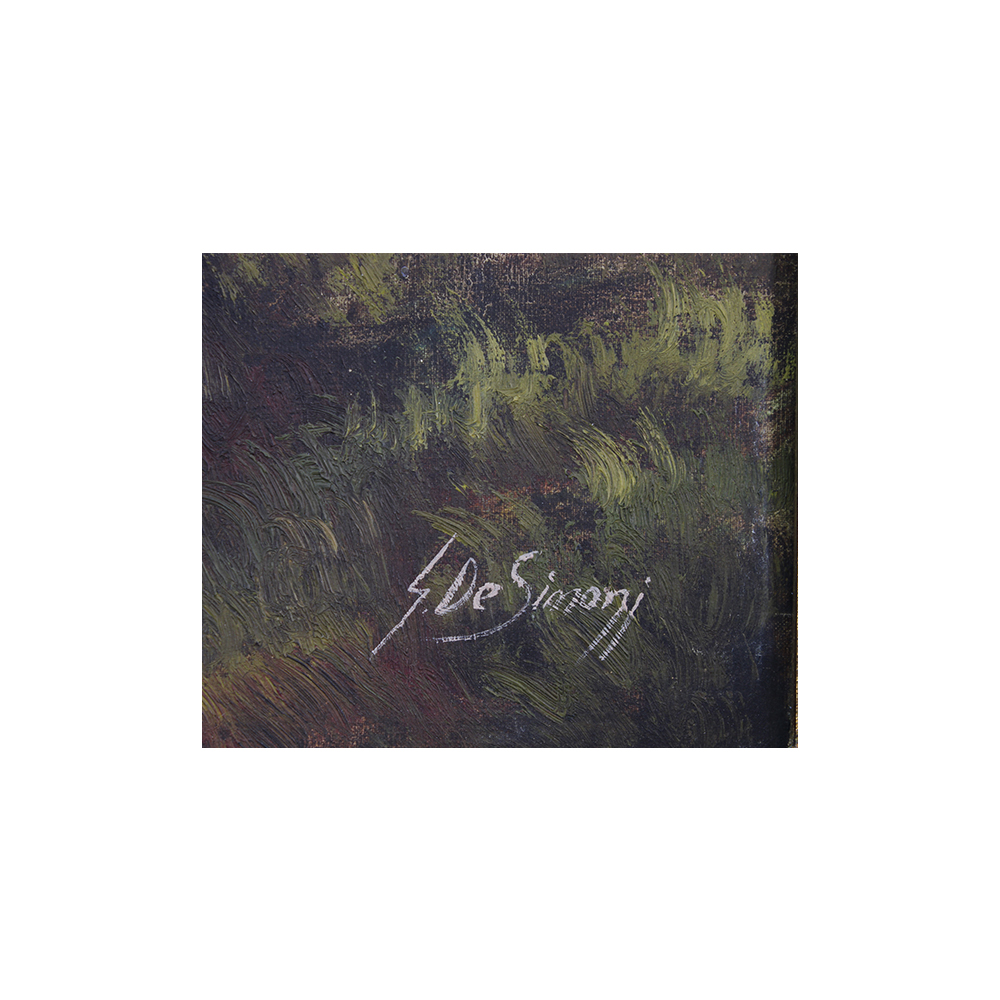 GUY DE SIMONI olio su tela raffigurante poeasia campestre dal titolo Il Torrente dentro cornice in legno dorato, si allega cartaceo informativo relativo al pittore Italia XX secolo h cm 45 x 80 - cornice h cm 65 x 99