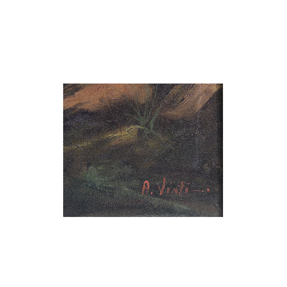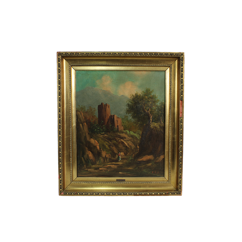 ATOS VINTI olio su tela raffigurante Rocca, firma in basso a dx dentro cornice in legno dorato Italia primi metà del 900 h cm 60 x 50 - cornice h cm 79 x 68