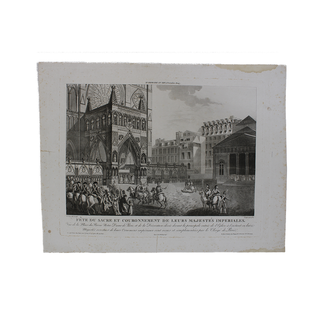 INCISIONE Le Coeur Louis, Fete du sacre et couronnement de leurs majestes imperiales, allega foglietto descrittivo Francia XIX secolo h cm 35 x 46