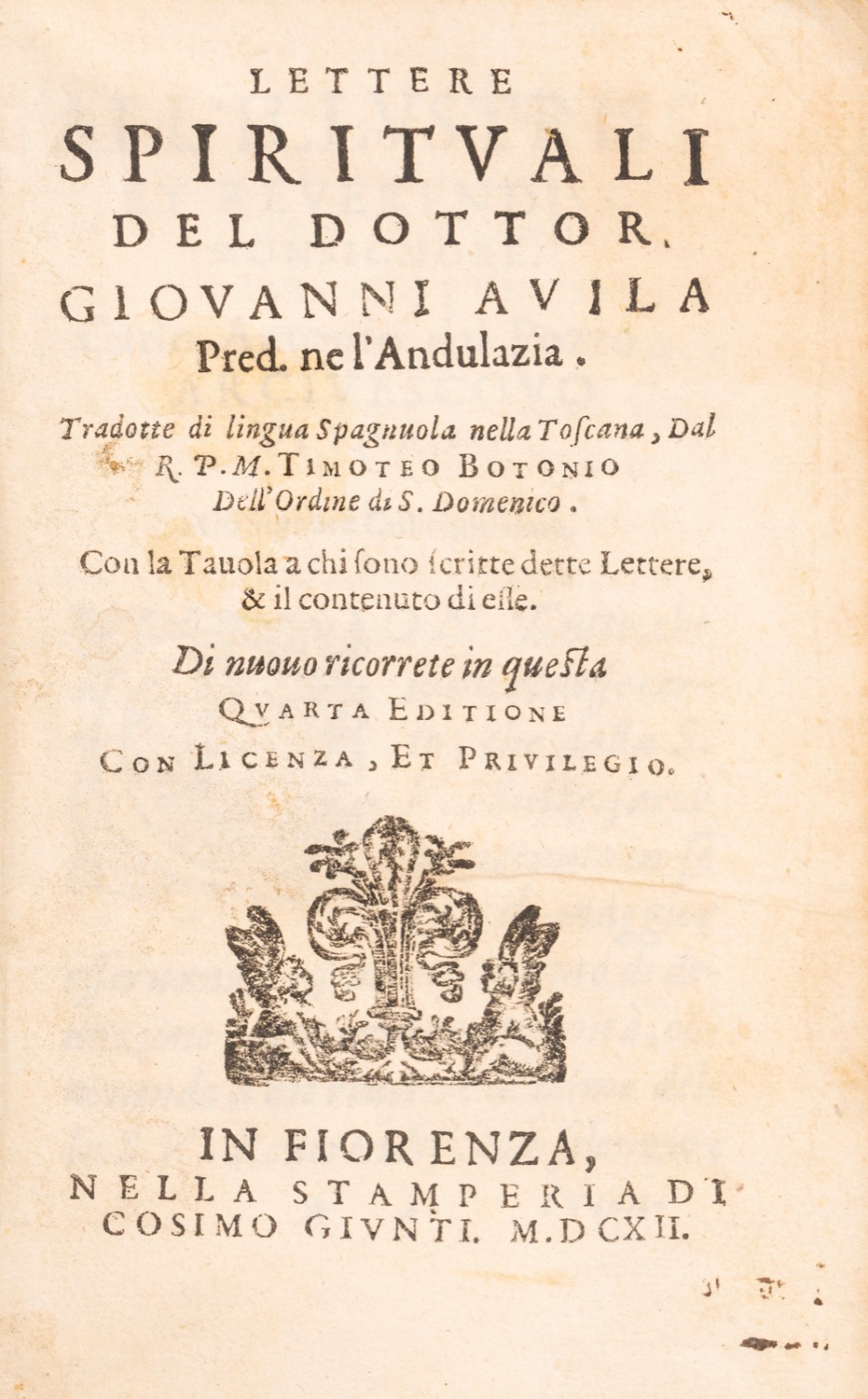 Giovanni D'Avila - Lettere spirituali del dottor Giovanni Avila, 1612 (…)