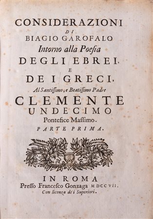 Garofalo, Biagio - Considerazioni di Biagio Garofalo intorno alla poesia degli Ebrei, e de i Greci, ... Parte prima., 1707 (…)