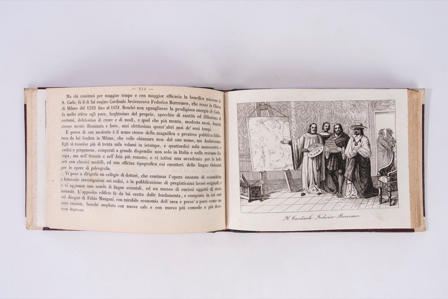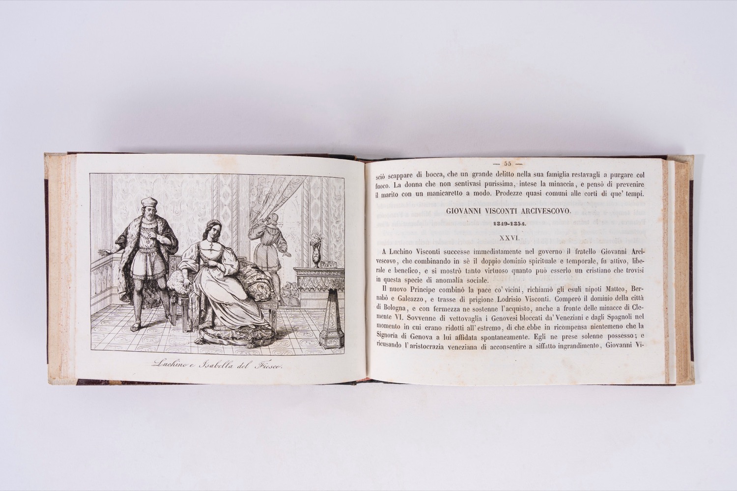 Napoli, Tipografia Angelo Trani, 1815. In-12°, leg. in br. ed. coeva; 3 vol.; parte prima (Napoli antica): pp. (8), 182, 2 c. ill. in b/n f.t. più volte ripiegate (una tra p. 100 e 101, riportante iscrizione angolo della Nunziata, e una in fondo, riportante un'iconografia di Napoli e del golfo, entrambe del Cataneo inc.); parte seconda (Napoli moderna): pp. (4), 5-189, (1 b.); parte terza (Napoli moderna): pp. (4), 5-212, 2 c. in fondo n.n. con tavole pesi e misure e statistiche anno 1814, ripetute nella numerazione le p. 167-168. Opera in barbe e ancora a fogli chiusi. Presenza di alcuni aloni d'umido. Opera completa in stato di conservazione generale molto buono. § Insieme nel lotto: Baroni Clemente, La storia di Milano narrata a' giovinetti, Milano, Dall'antica ditta Pietro e Giuseppe Vallardi (Tip. Pirola), 1870. In-16°, oblungo, 132x182 mm, leg. rigida coeva in mezza pelle e tela ai piatti, copertina illustrata con titolo e stemmi della brossura originale incollata al piatto anteriore e titolo su scudetto in carta, sempre dalla brossura originale, incollato al dorso, tagli spruzzati di rosso; antiporta incisa e 15 tavole incise a piena pagina anch'esse in acciaio fuori testo. Opera senza data di pubblicazione (1870?). Esemplare quasi in ottime condizioni.Napoli, Tipografia Angelo Trani, 1815. In-12°, leg. in br. ed. coeva; 3 vol.; parte prima (Napoli antica): pp. (8), 182, 2 c. ill. in b/n f.t. più volte ripiegate (una tra p. 100 e 101, riportante iscrizione angolo della Nunziata, e una in fondo, riportante un'iconografia di Napoli e del golfo, entrambe del Cataneo inc.); parte seconda (Napoli moderna): pp. (4), 5-189, (1 b.); parte terza (Napoli moderna): pp. (4), 5-212, 2 c. in fondo n.n. con tavole pesi e misure e statistiche anno 1814, ripetute nella numerazione le p. 167-168. Opera in barbe e ancora a fogli chiusi. Presenza di alcuni aloni d'umido. Opera completa in stato di conservazione generale molto buono. § Insieme nel lotto: Baroni Clemente, La storia di Milano narrata a' giovinetti, Milano, Dall'antica ditta Pietro e Giuseppe Vallardi (Tip. Pirola), 1870. In-16°, oblungo, 132x182 mm, leg. rigida coeva in mezza pelle e tela ai piatti, copertina illustrata con titolo e stemmi della brossura originale incollata al piatto anteriore e titolo su scudetto in carta, sempre dalla brossura originale, incollato al dorso, tagli spruzzati di rosso; antiporta incisa e 15 tavole incise a piena pagina anch'esse in acciaio fuori testo. Opera senza data di pubblicazione (1870?). Esemplare quasi in ottime condizioni.