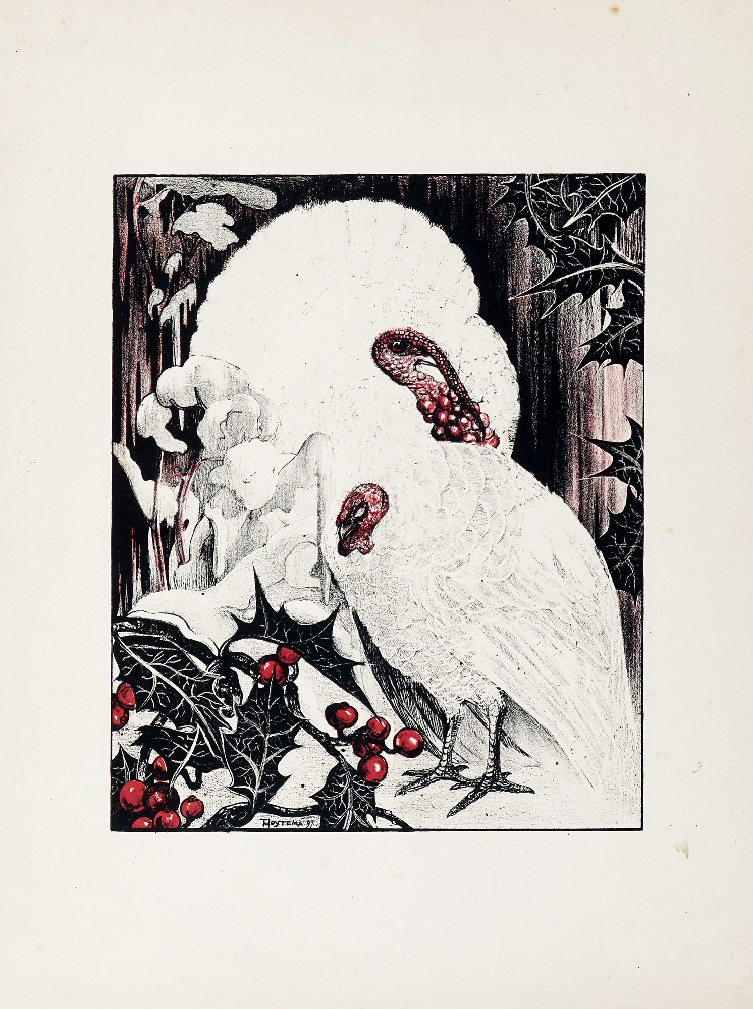 1) Drie hanen (Tre galli). 1897. Litografia su carta applicata. Firma in lastra in basso a sinistra. Appunti di collezione a stampa sul passe-partout. 2) Kalkoenen (Tacchini). 1897. Litografia a colori. mm 170x137. Foglio: mm 287x227. Firmata e datata in lastra in basso a sinistra. Appunti di collezione a penna e inchiostro di china sul passe-partout. (2) Buona conservazione generale.