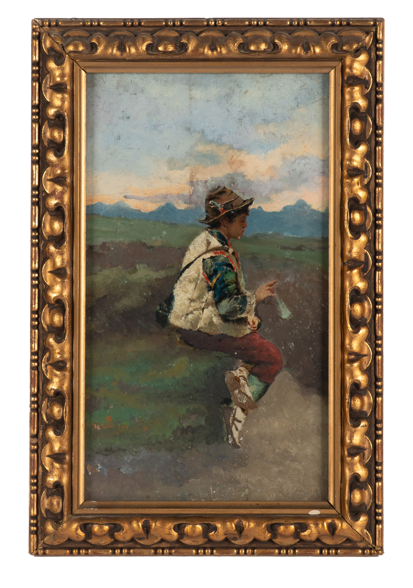 Anonimo del XIX secolo, Contadino. 1895. Olio su tavola. cm 33x19. Al verso...