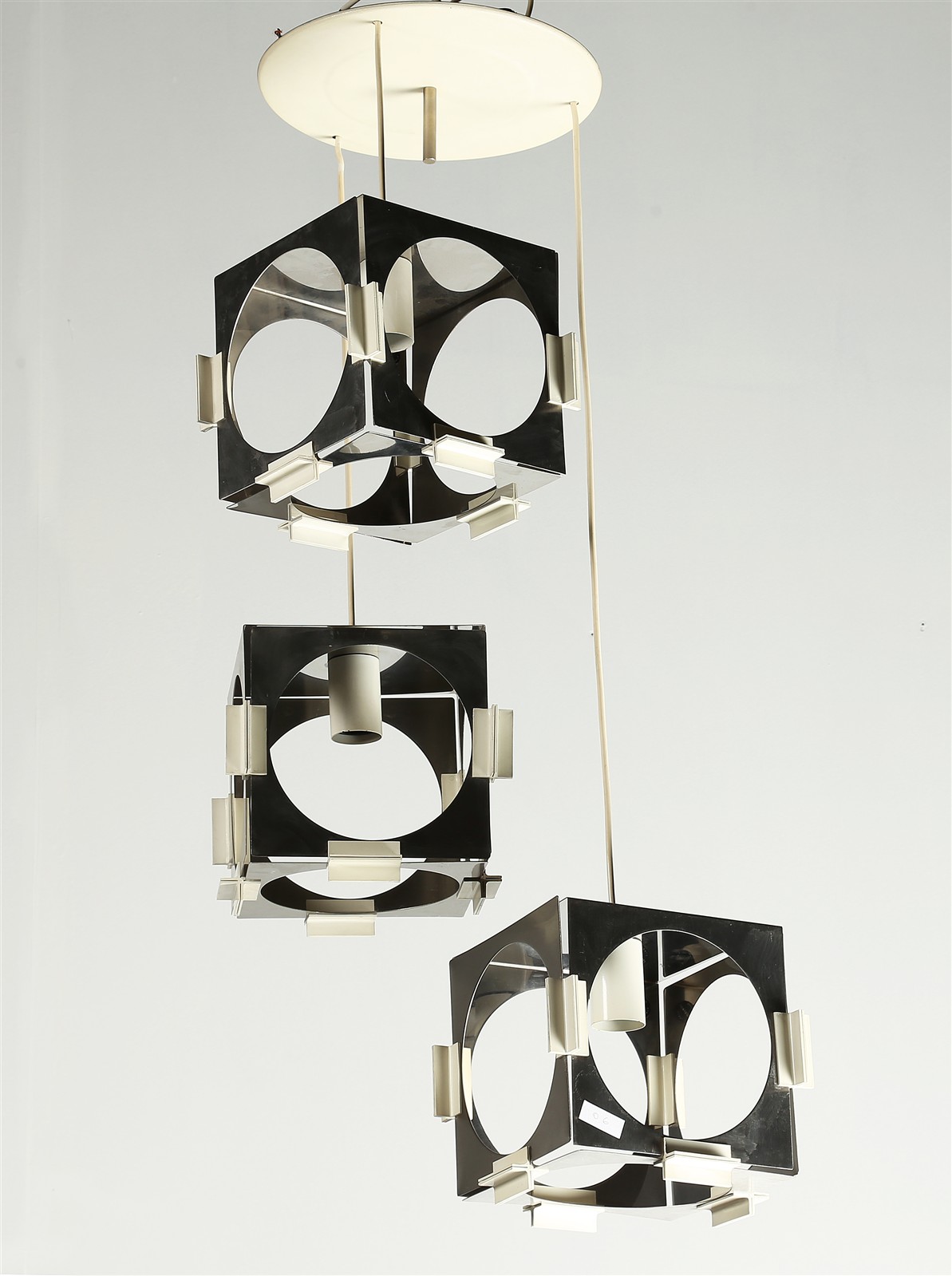 REGGIANI Lampadario. Acciaio. Cm 50,00 x 97,00. Anni '60.