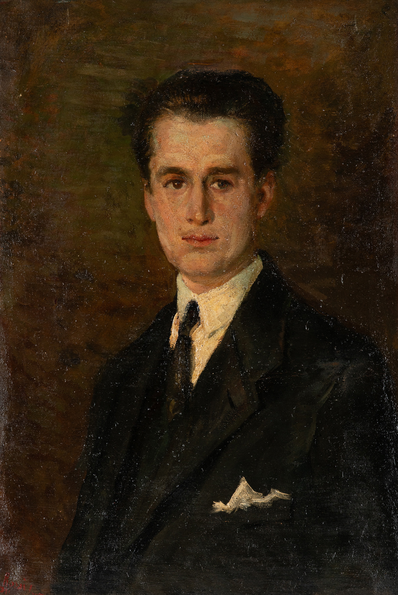 Olio su tela. cm 80,5x54. Iscritto "Rossi L." e datato in basso a sinistra. Iscrizione "Luigi Rossi" e "Autoritratto" a matita sul verso del telaio. (1) In sottile cornice: cm 81,5x55,5. Tre restauri a toppa al verso. Cadute di colore sparse con crettature e difetti ai margini. Buona conservazione complessiva.