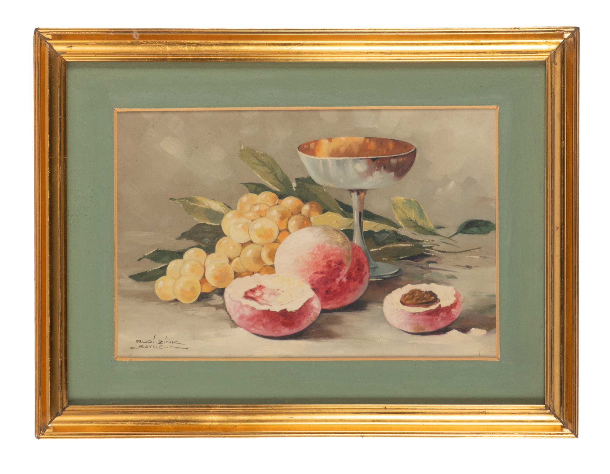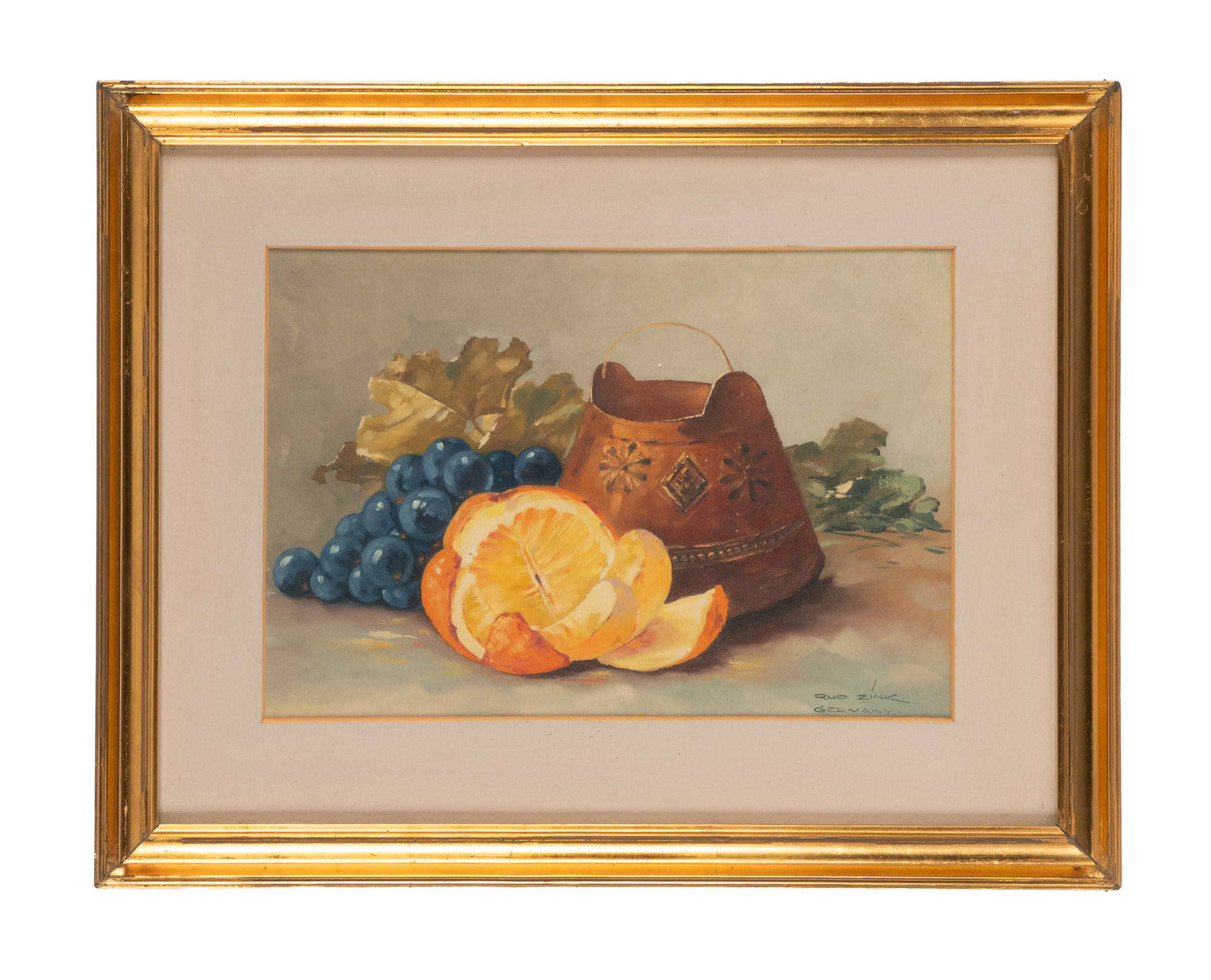 Rudi Zink, Lotto composto di 2 nature morte. Coppia di oli su masonite. cm...