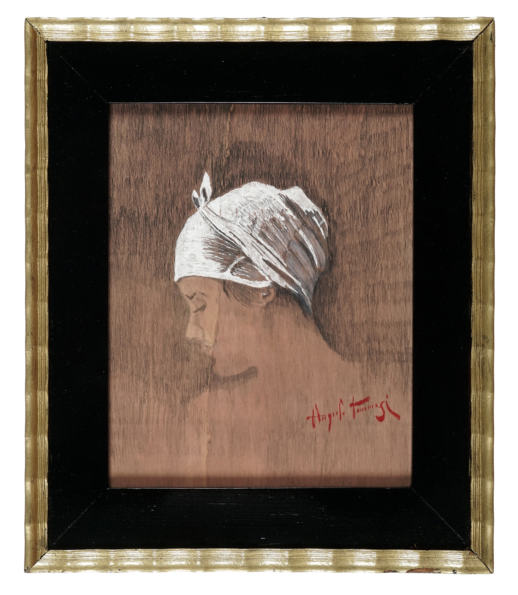 Angiolo Tommasi, Volto femminile di profilo. Matita e tempera bianca su...