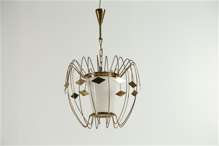 MANIFATTURA DEL XX SECOLO Lampadario. Ottone e vetro. Cm 35,00 x 40,00. Anni '50.
