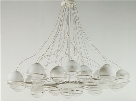 MANIFATTURA ITALIANA DEL XX SECOLO Lampadario bianco a 20 luci in vetro bianco. Metallo, vetro. Cm 141,00 x 100,00.