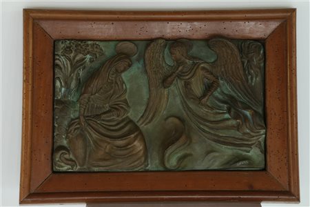 LODI LEONE (1900 - 1974) Annunciazione. Legno e bronzo. Cm 30,00 x 48,00 x 7,00.