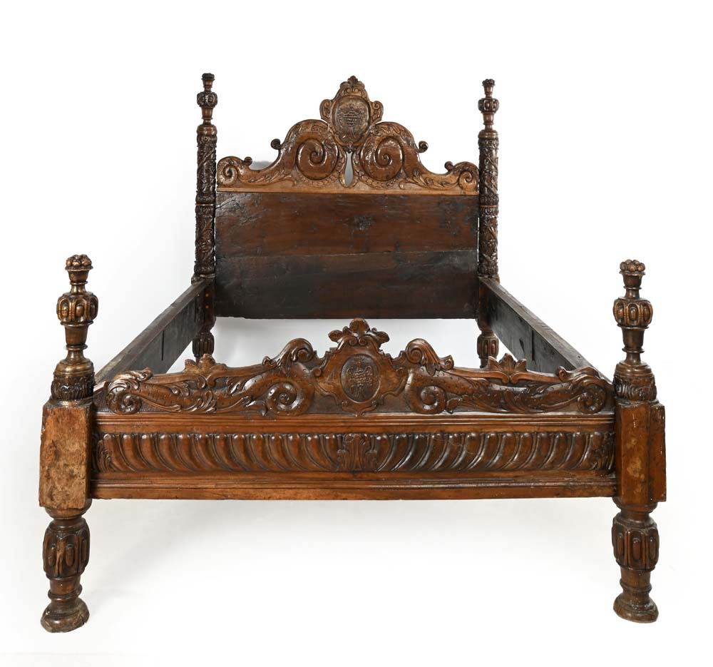 Lot 32 | Letto in noce, Italia settentrionale, XVII secolo cm 153x208x155 testate di...