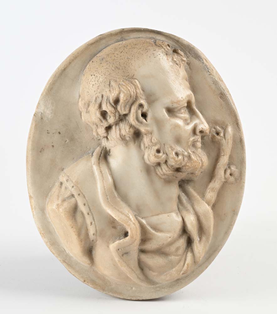 Bassorilievo ovale in marmo, fine del XVIII secolo cm 19x15,5 raffigurante il profilo di San Giuseppe