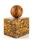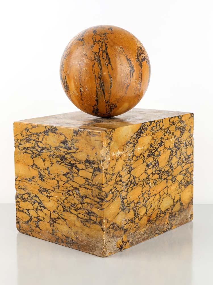 Scultura in marmo giallo broccatello di Siena cm 28x19x16 in forma di cubo sormontato da una sfera Collezione privata, Siena