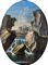 Paesaggio con cascata olio su tavola ovale cm 16,5x12,5 - in cornice cm 21x16,5