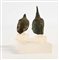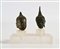 Due testine di Buddha in bronzo altezza cm 5 e cm 6 - l'insieme cm 10x10,5x6 montate su supporto rettangolare in plexiglass