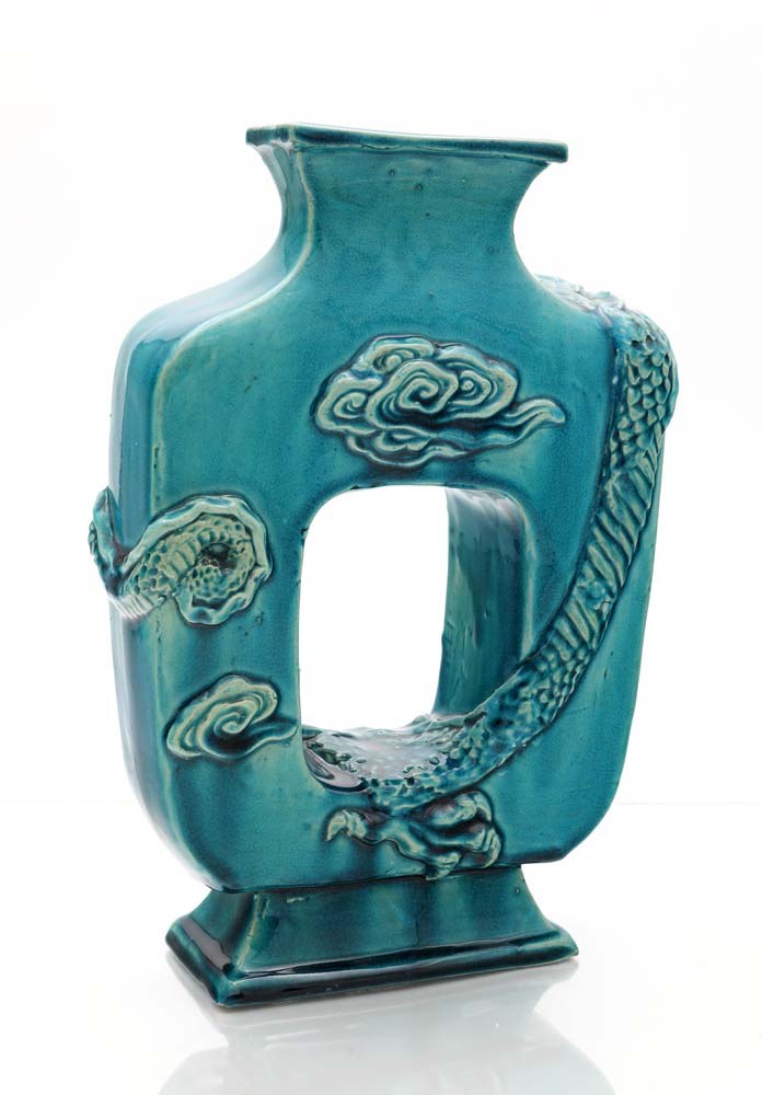 Vaso in ceramica turchese con drago in rilievo, Cina, dinastia Qing, XIX secolo altezza cm 24,5x15x6