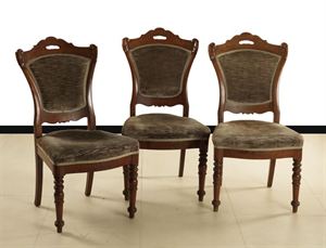 LOTTO DI SEI SEDIE Lotto di sei sedie in noce, seconda metà XIX secolo H...