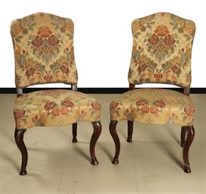 COPPIA DI SEDIE Coppia di sedie in noce rivestite con tessuto decorato a fiori, gambe a capretta, Piemonte metà XVIII secolo H 110 60x56 cm