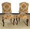 COPPIA DI SEDIE Coppia di sedie in noce rivestite con tessuto decorato a...