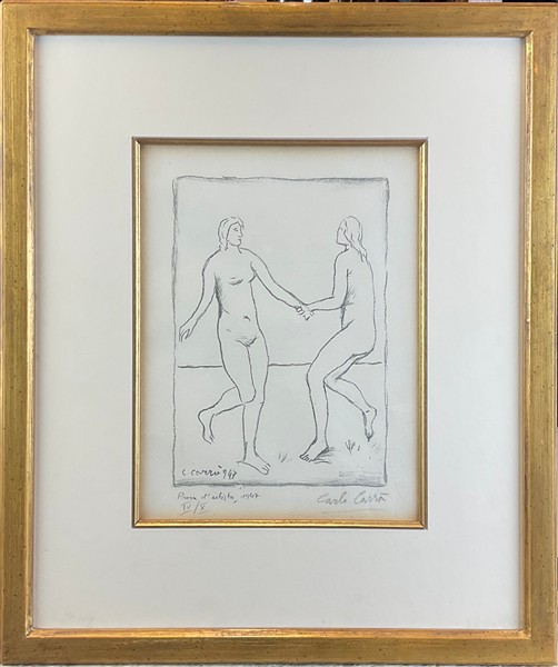 Carlo Carrà "Fanciulle" 1947 litografia - prova d'artista cm 28,5x22 firmato, da