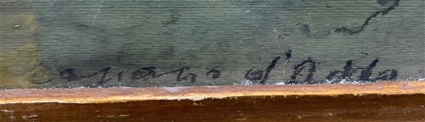 firmato, datato e titolato in basso a sinistra. In cornice (difetti)