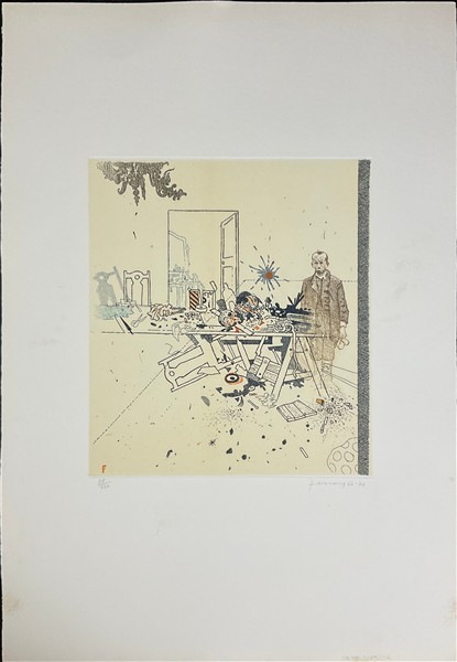 Gianfranco Ferroni "La stanza ritrovata II" 1966 - 70 acquaforte a colori e fond