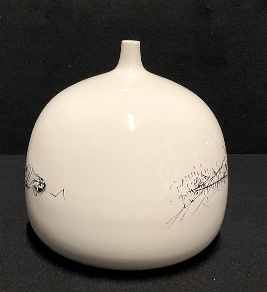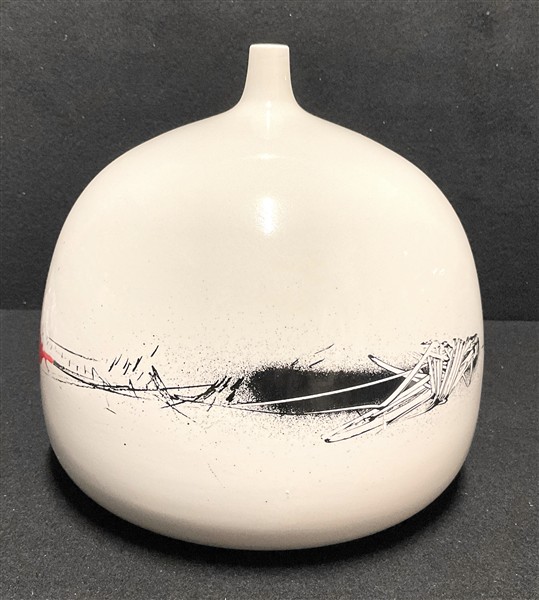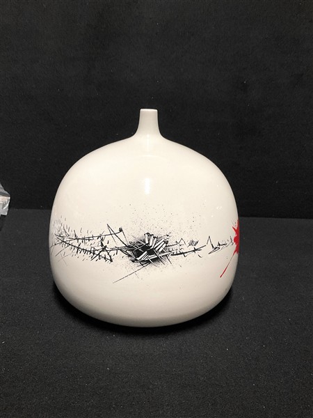 Lot 633 | Emilio Scanavino Vaso in ceramica smaltata e serigrafata h cm 25, d circa cm 25
