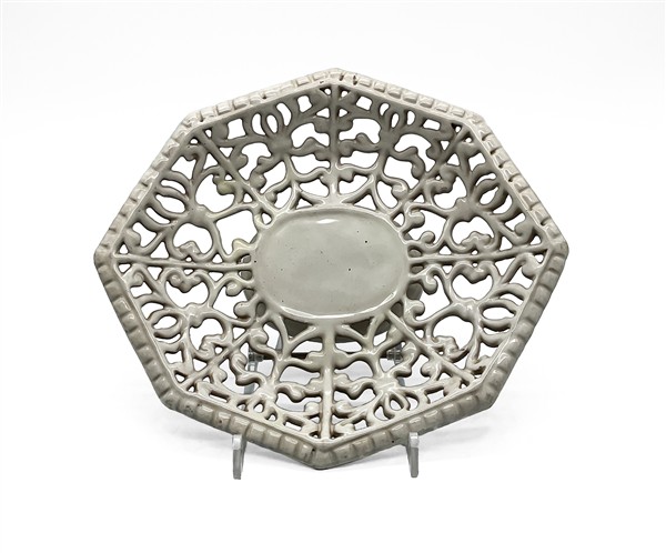 Manifattura di Faenza, secolo XVII Alzata in maiolica bianca di forma ottagonale con fascia traforata (cm 32x27,5)