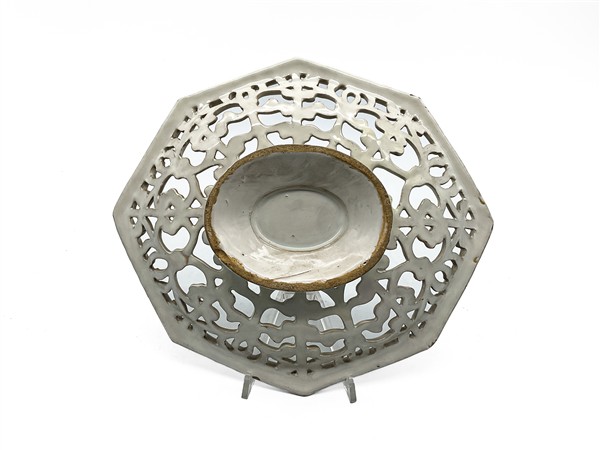 Manifattura di Faenza, secolo XVII Alzata in maiolica bianca di forma ottagonale con fascia traforata (cm 32x27,5) (difetti)